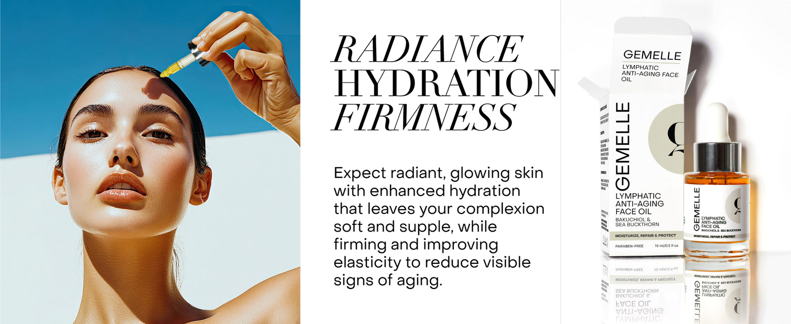 Warm 3-5 drops of oil between the hands, then apply and massage morning & night into the face and neck areas for 10-15 seconds. Apply to dry or damp skin for 30 days continuously to feel and see best results.