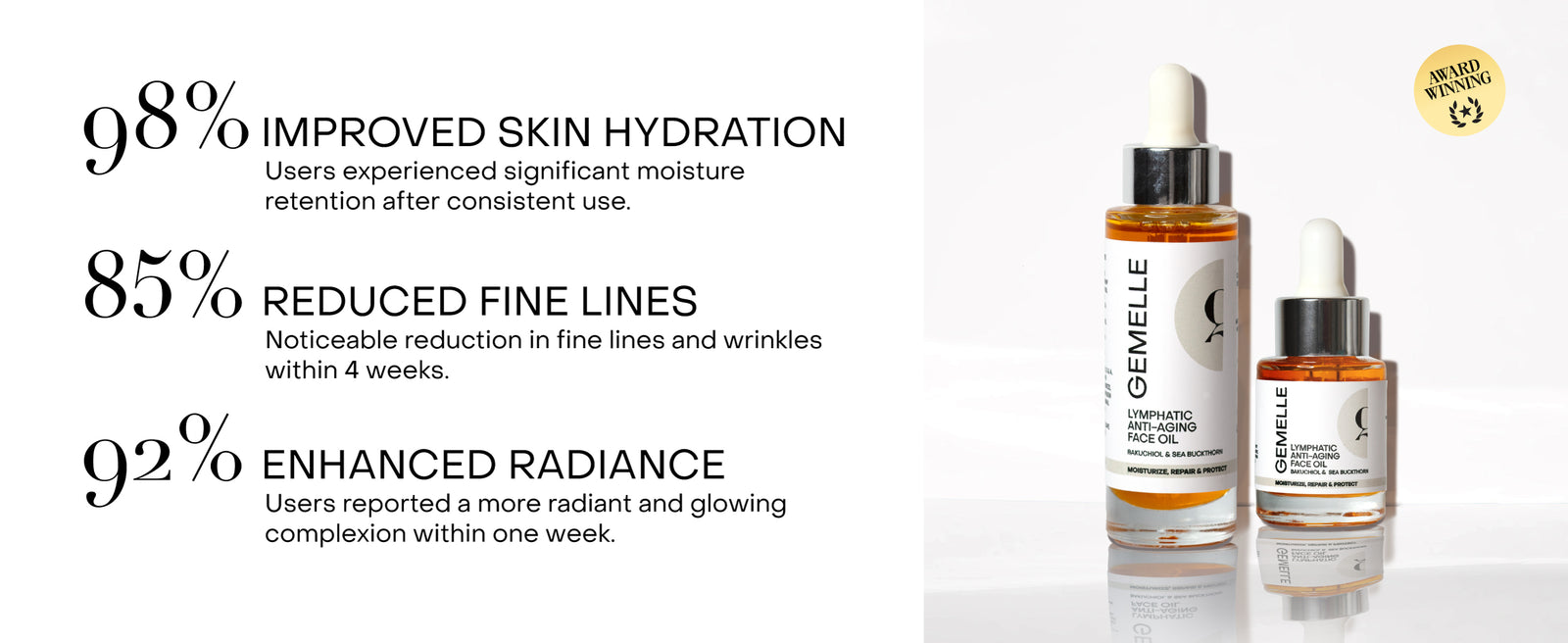 Our high altitude Rosehip Oil, from the mountains of Lesotho, combined with Squalane, repairs the skin’s barrier and locks in moisture for optimal hydration. We do not use faux colors. The deep orange color is due to a high content of carotenoids – potent antioxidants to neutralize free radicals and inflammation from UV radiation.